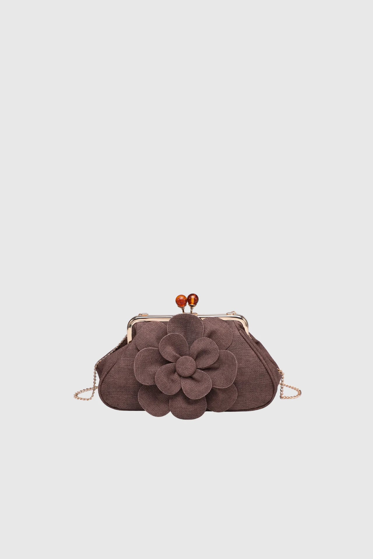 Dê um toque romântico e elegante aos seus looks com esta bolsa clutch adornada por uma aplicação floral em 3D. O fecho metálico estilo vintage com esferas decorativas acrescenta charme extra, enquanto a corrente fina permite usar ao ombro ou como clutch de mão. Um modelo delicado e feminino, perfeito para ocasiões especiais.