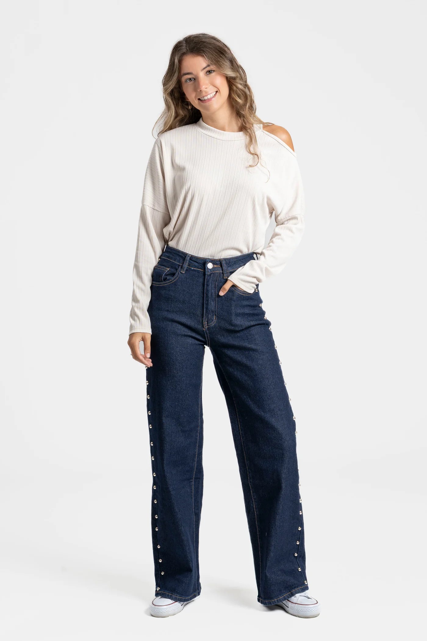 O clássico denim ganha um toque moderno e cheio de estilo com as nossas jeans Tachuela. Confeccionadas em tecido de mistura de algodão com elastano, oferecem conforto e liberdade de movimento sem perder a estrutura. O design reto com corte limpo e o detalhe de tachinhas laterais tornam esta peça única e versátil — perfeita para criar looks casuais com um toque sofisticado.