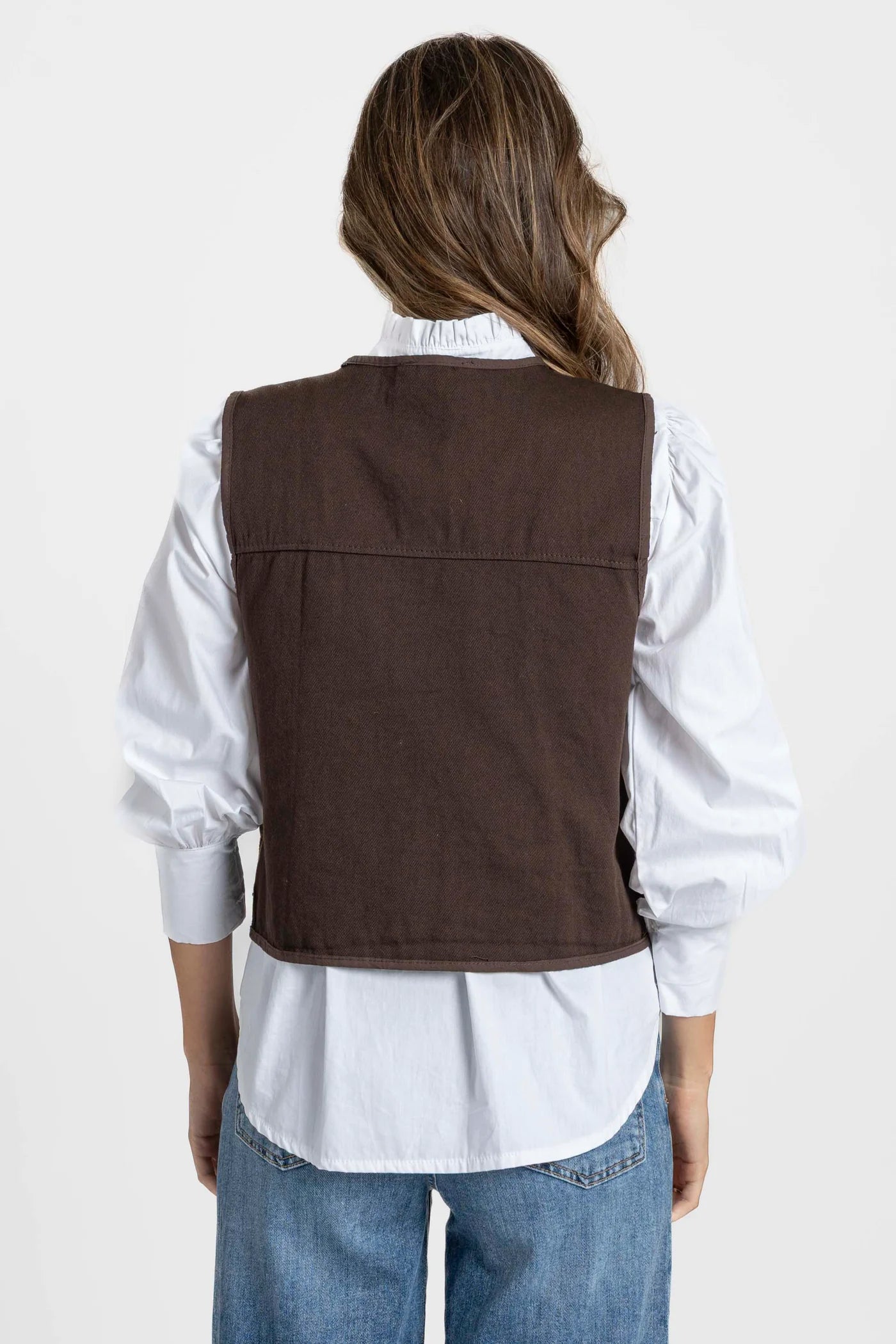 Perfeito para completar os teus coordenados de meia-estação, este colete é uma aposta certeira para quem procura elegância casual com um toque original.