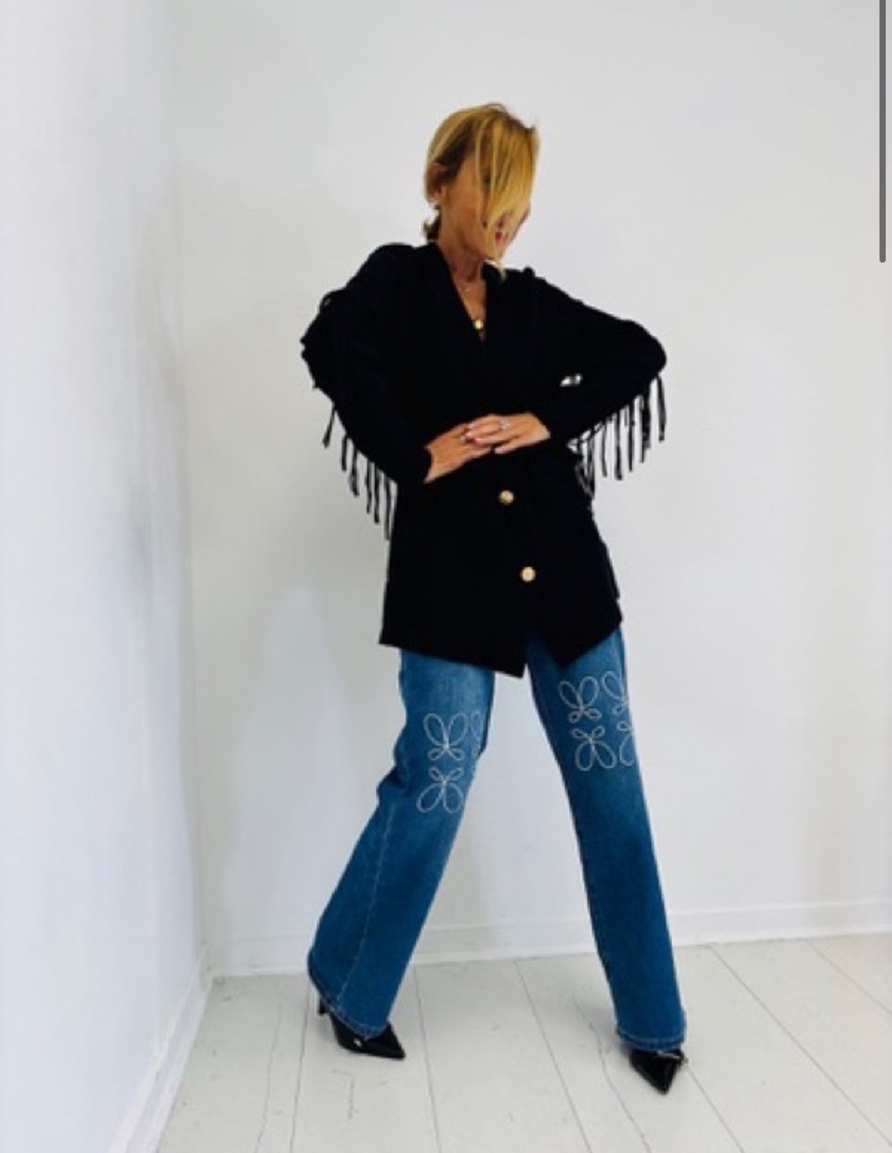 Um casaco leve e original que conjuga feminilidade, conforto e estilo western, perfeito para a meia-estação.