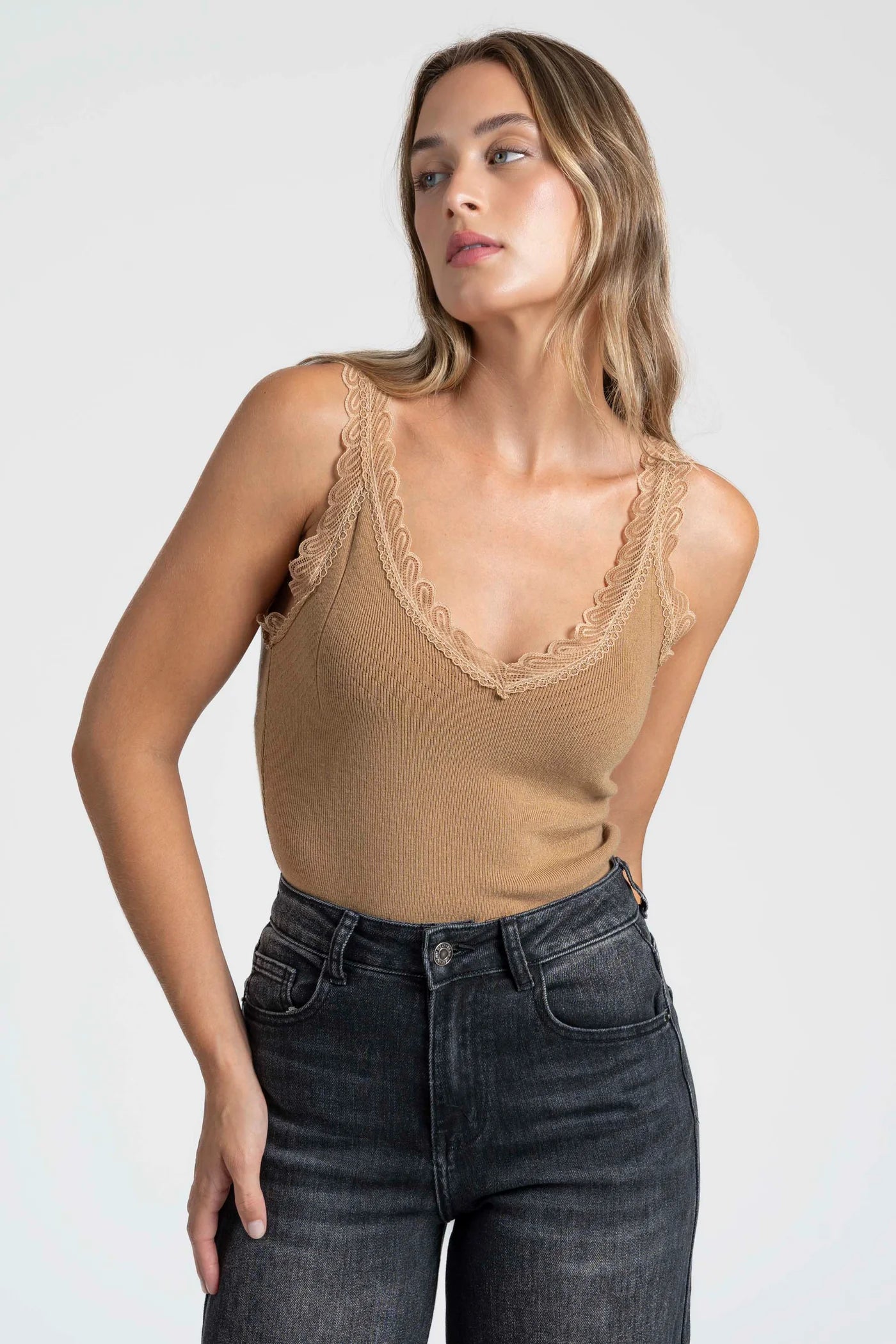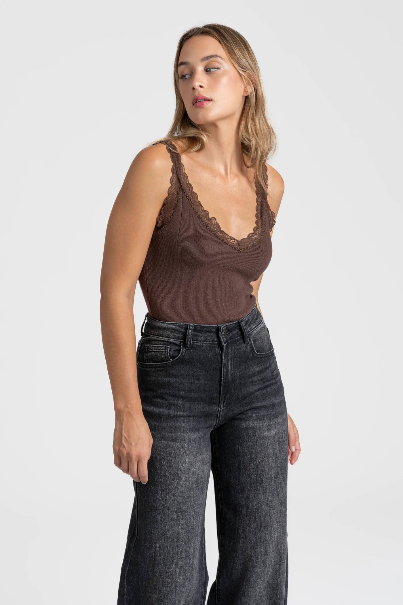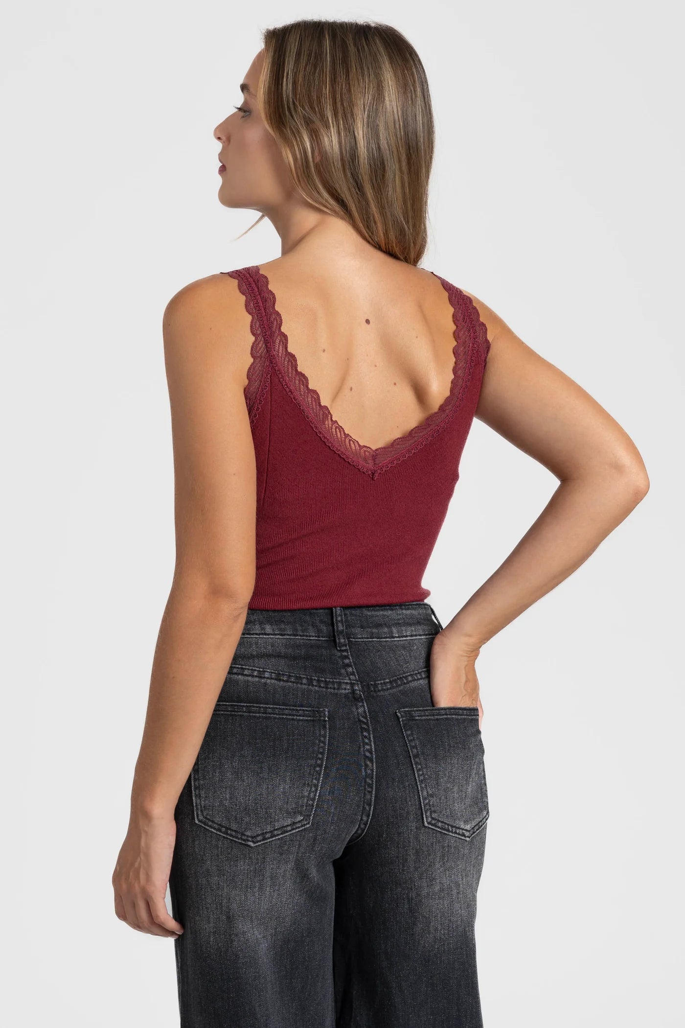 Apresenta alças em renda delicada, que acrescentam feminilidade e tornam este top ideal tanto para looks casuais como para coordenados mais elegantes. Disponível em várias cores, adapta-se a todos os estilos e momentos do dia.