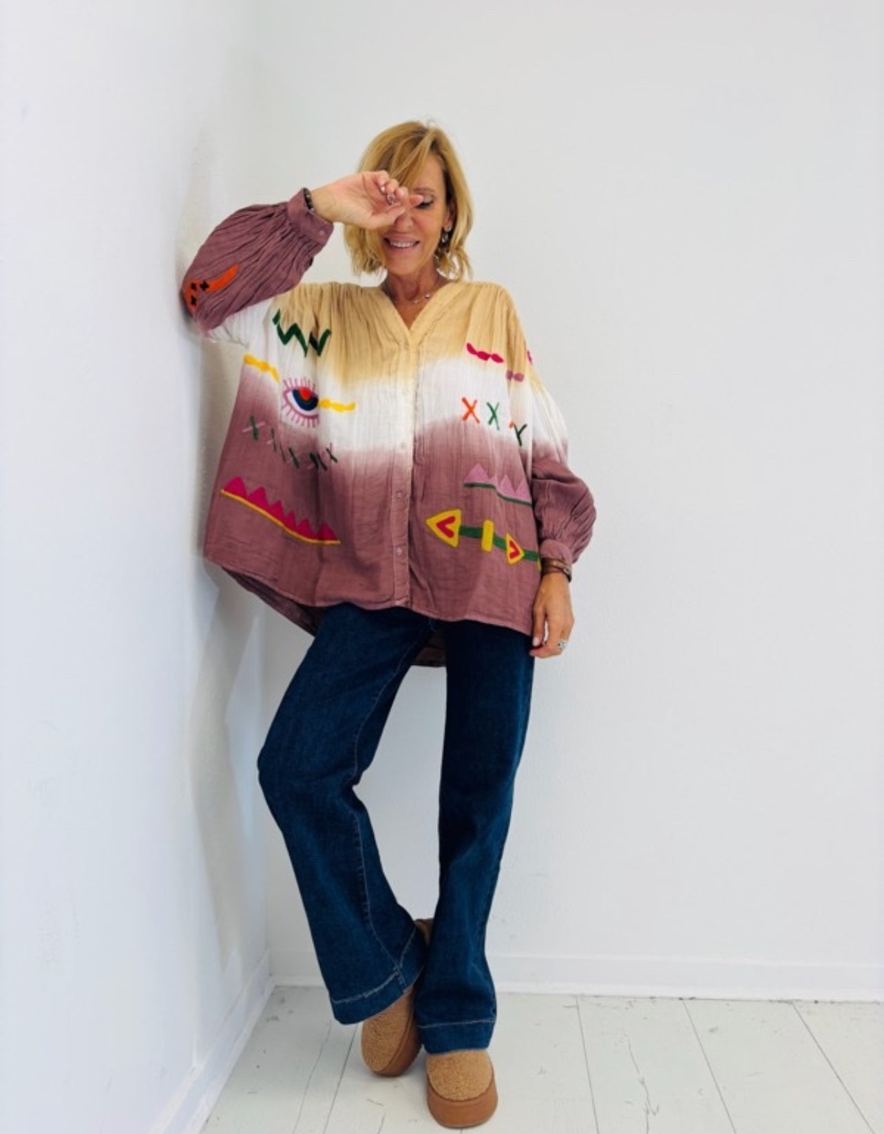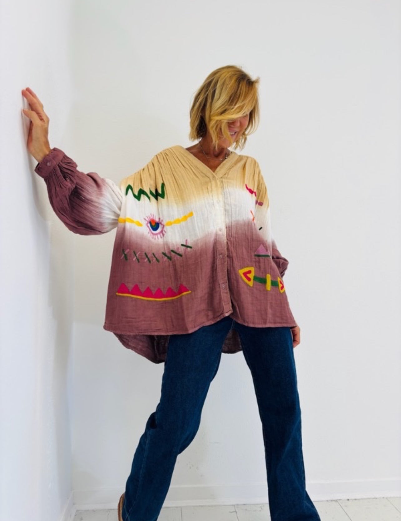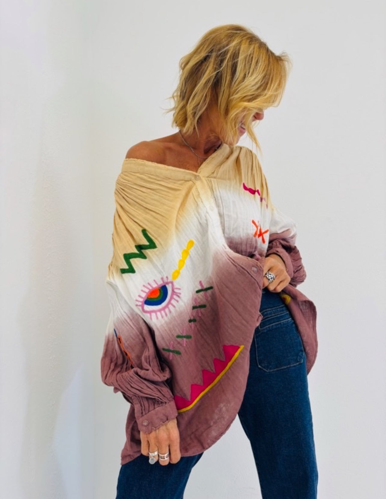 Adiciona um toque artístico e original aos teus looks com esta camisa oversize 100% algodão.