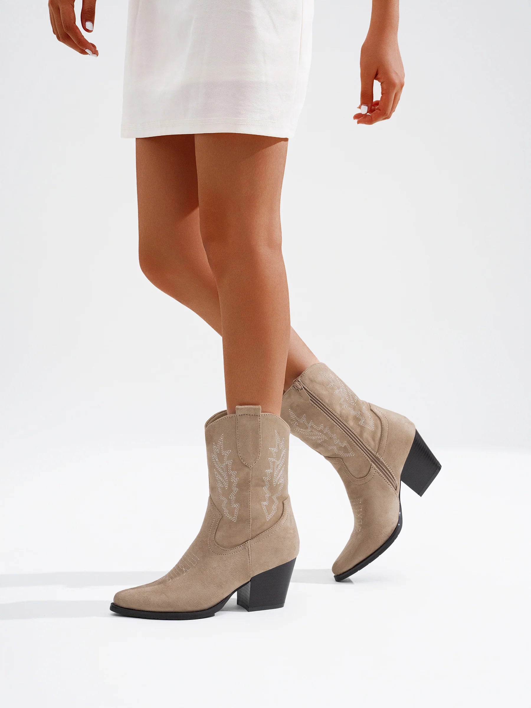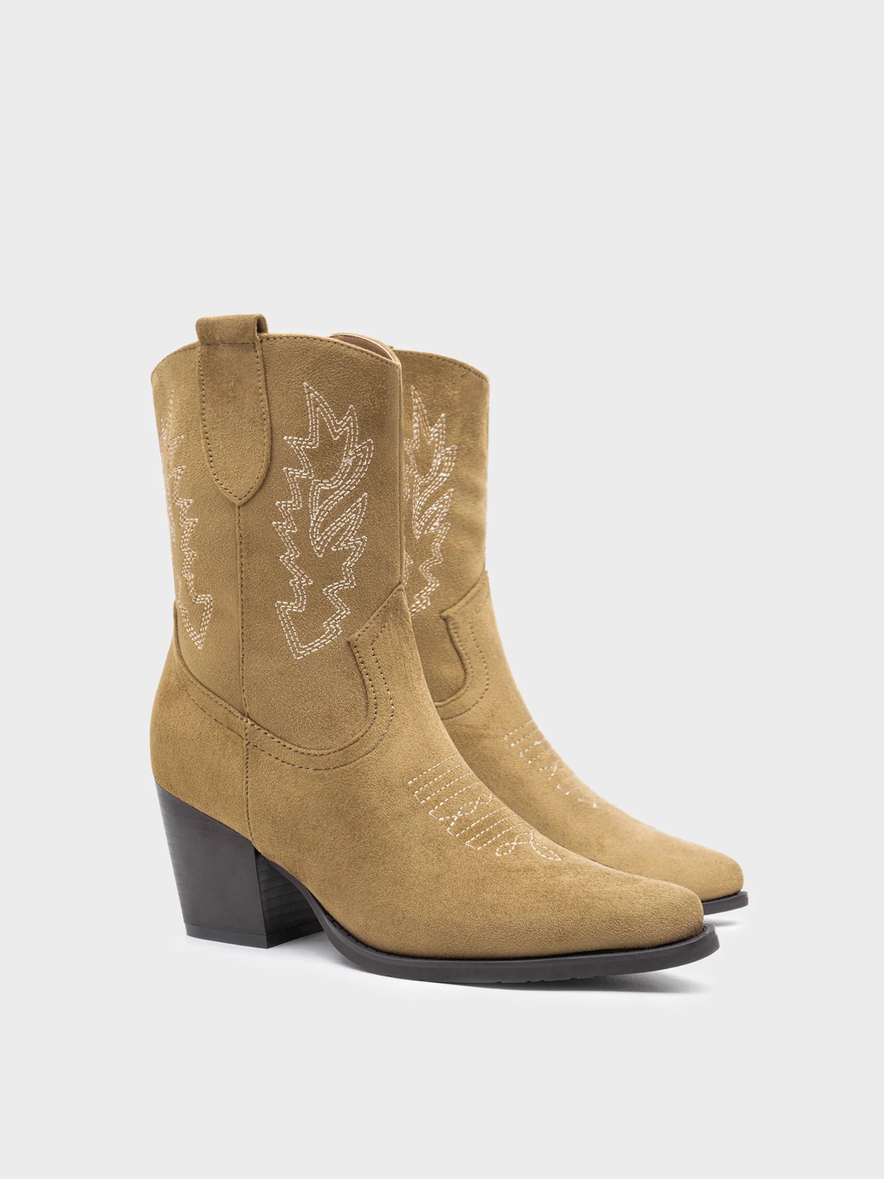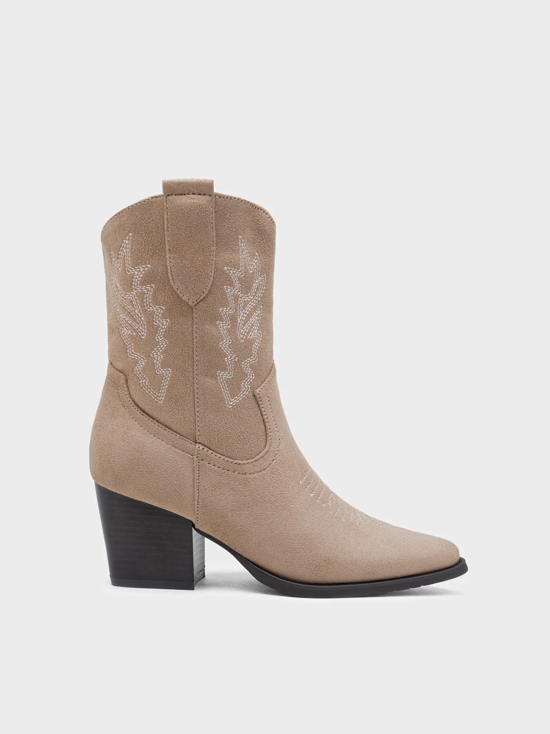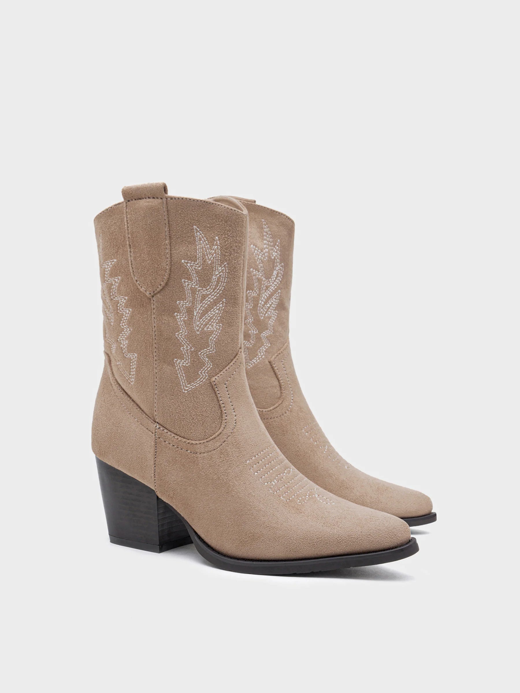 As Texanas são a escolha perfeita para quem procura estilo e personalidade em cada passo. Com um design inspirado no clássico estilo western, estas botas destacam-se pelos detalhes bordados e pelas abas laterais que facilitam o calçar. A biqueira afunilada e o salto médio de 7 cm conferem elegância e conforto, tornando-as ideais tanto para o dia a dia como para looks mais sofisticados.